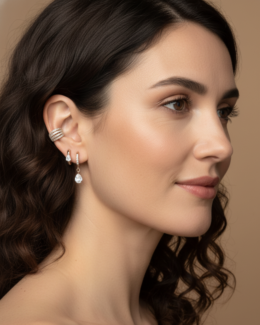 We only use high-quality, skin-safe materials like 18k gold plating and hypoallergenic components. Beauty should never compromise comfort.