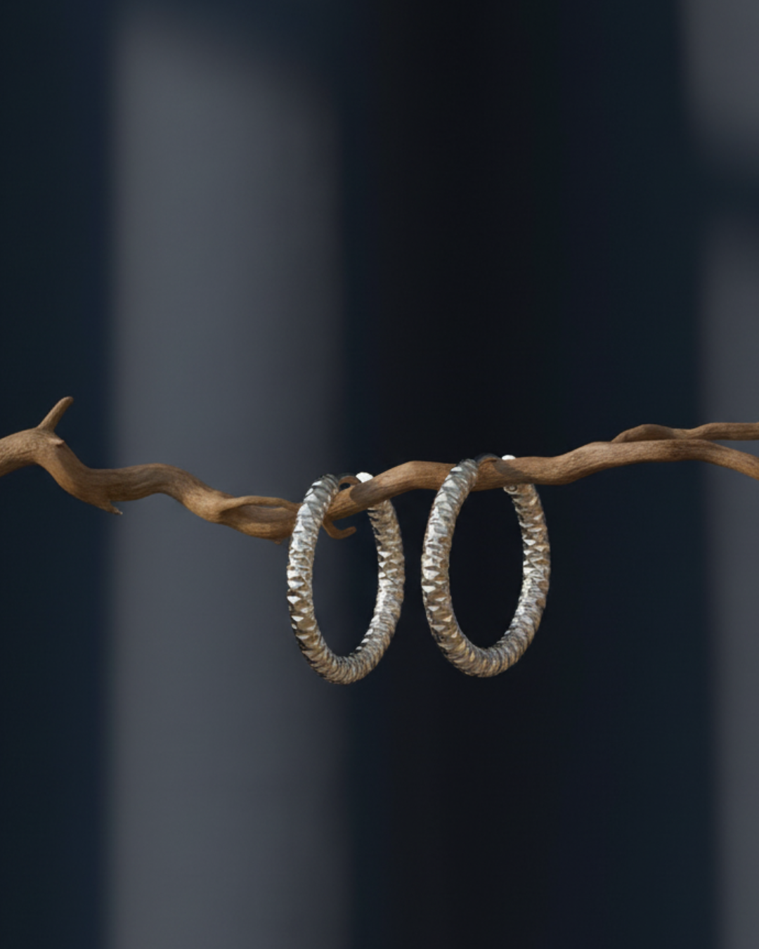 Los aros Lyselle están elaborados con un delicado acabado martillado que refleja la luz maravillosamente, ofreciendo un equilibrio perfecto entre elegancia y textura moderna.