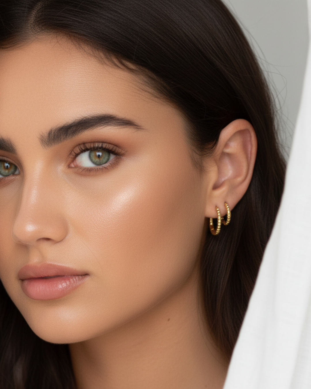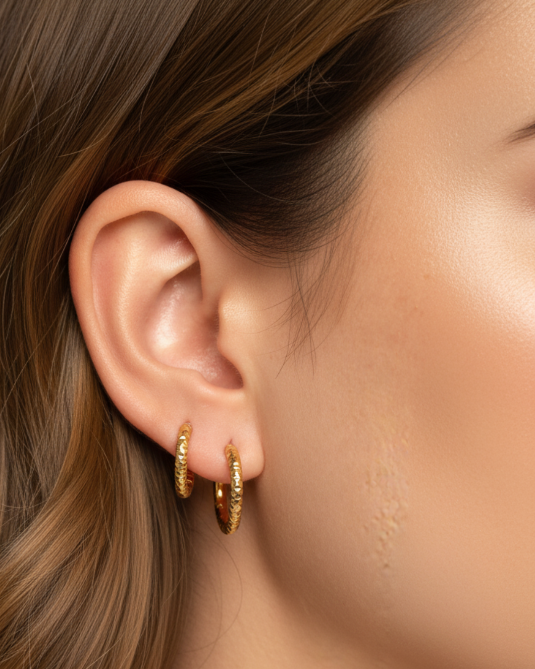 The Lyselle Hoops are crafted with a delicate hammered finish that reflects light beautifully, offering a perfect balance between elegance and modern texture.